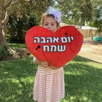 כרית לב גדולה – (50 ס"מ) עם רקמה "יום אהבה שמח"